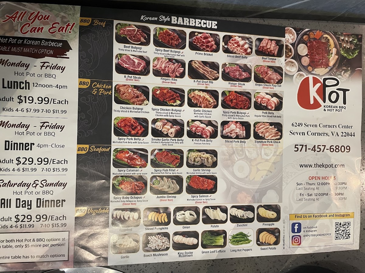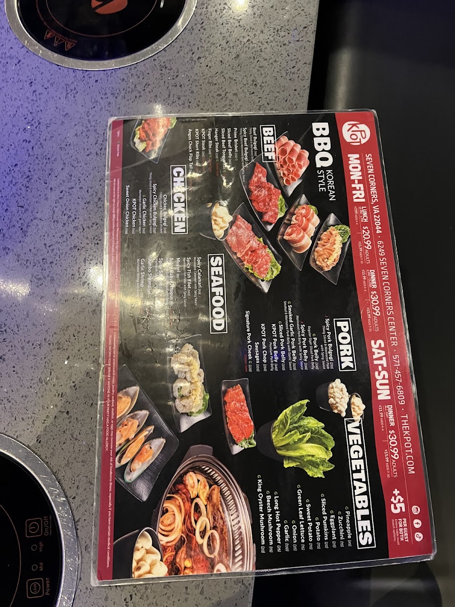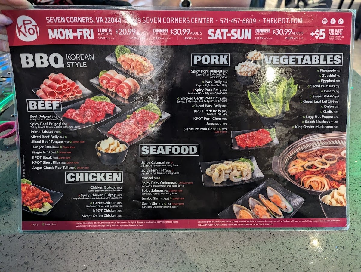Welcome to KPOT Korean BBQ & Hot Pot in Falls Church, a culinary haven for barbecue enthusiasts and hot pot aficionados alike! Nestled in the heart of Seven Corners Center, this vibrant restaurant offers a diverse array of dishes designed to tantalize your taste buds.